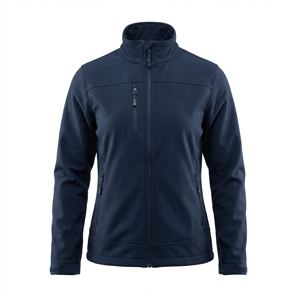 Water-resistant 3-layer softshell jacket with embroidered logo. Stretch fabric, zippered pockets, sizes XS to 4XL.
