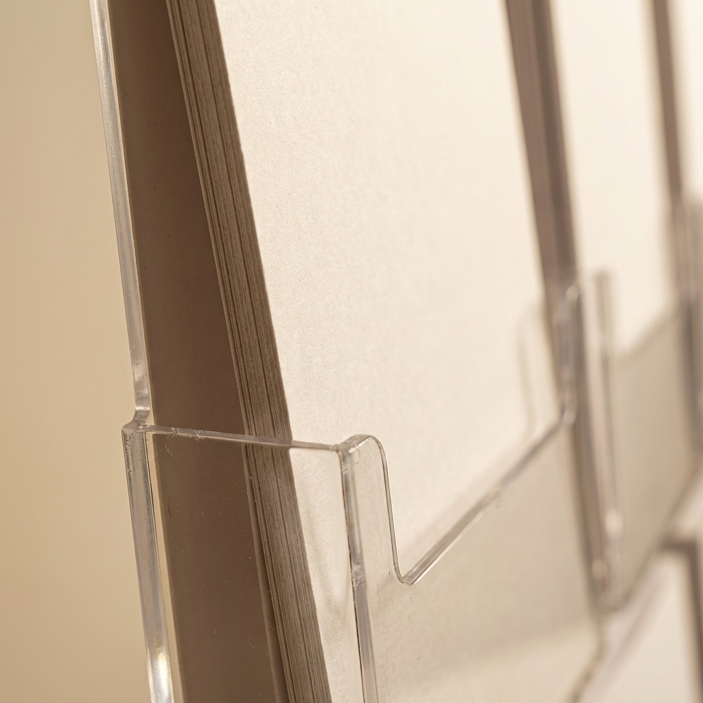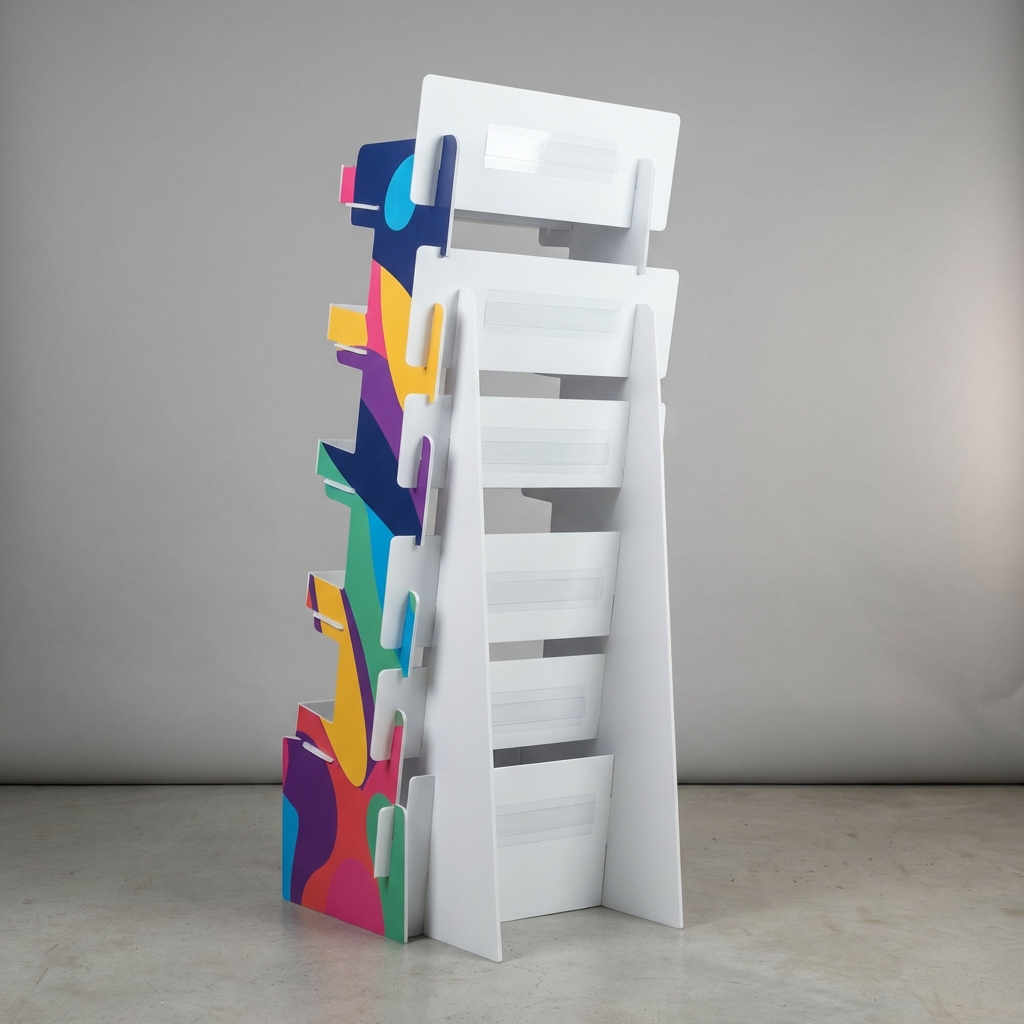 Set of 25 custom printed shelf talkers on rigid PVC with adhesive strips. Full-color, double-sided.