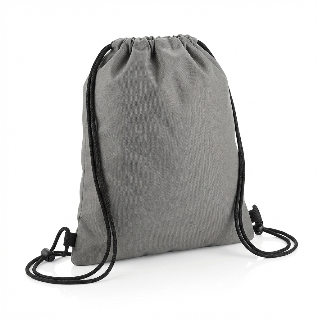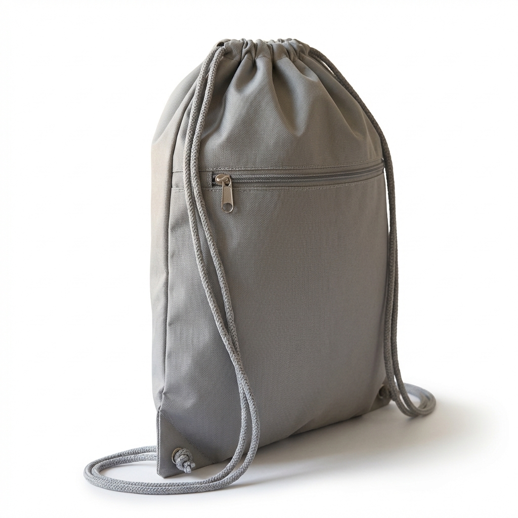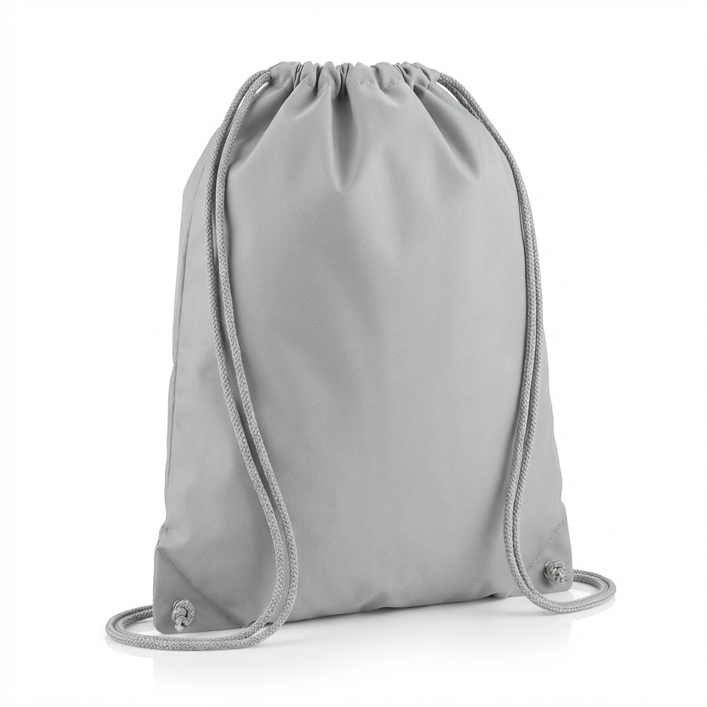 Custom drawstring backpack in 210D polyester with screen-printed logo. Lightweight, foldable.