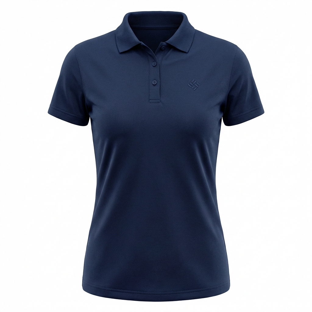 Women's fitted performance polo with moisture-wicking fabric and embroidered logo. Sizes XS to 2XL.