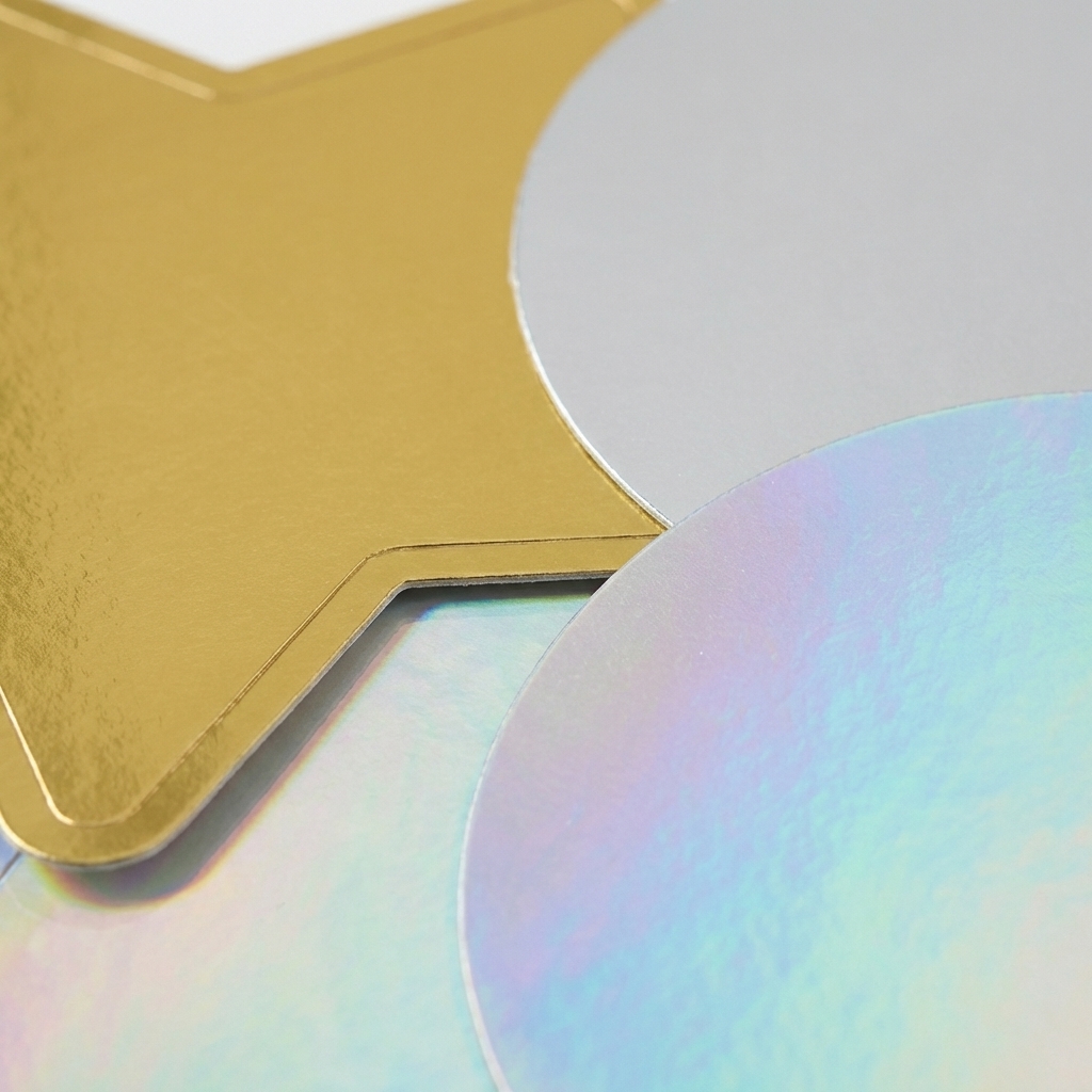 | Material | Metallic cast vinyl face stock (gold, silver, or holographic) with permanent adhesive |